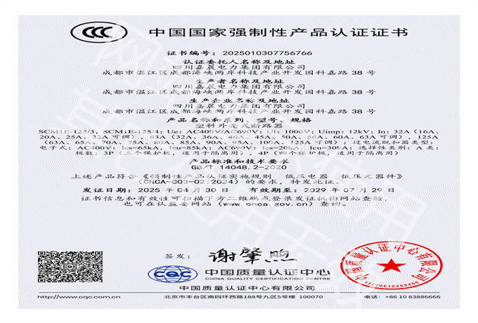 嘉晨电力-低压成套证书 SIN500Z双电源转换装置
