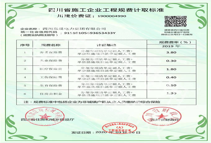 四川省施工企业工程规费计取标准—川建价费证