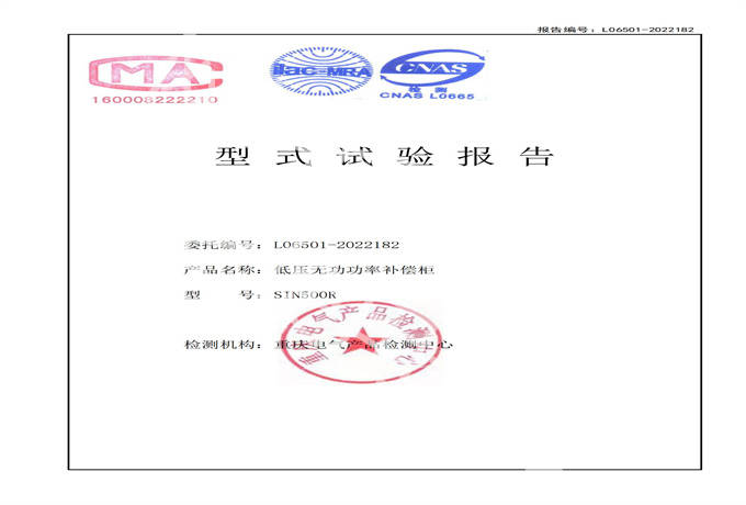嘉晨电力-低压成套证书 SIN500R低压无功补偿柜