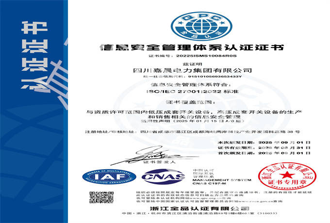 信息安全管理体系认证证书