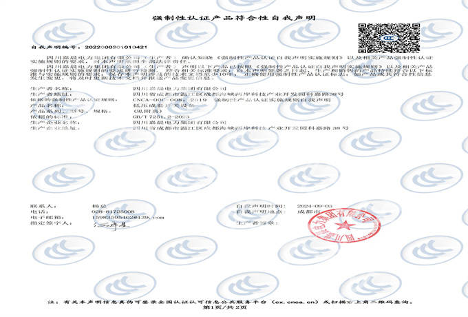 嘉晨电力-低压成套证书 SIN500S低压成套开关设备